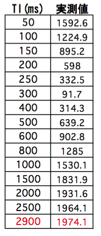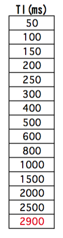 TIは以下に示す値に変化させて、連続で撮像していきます。